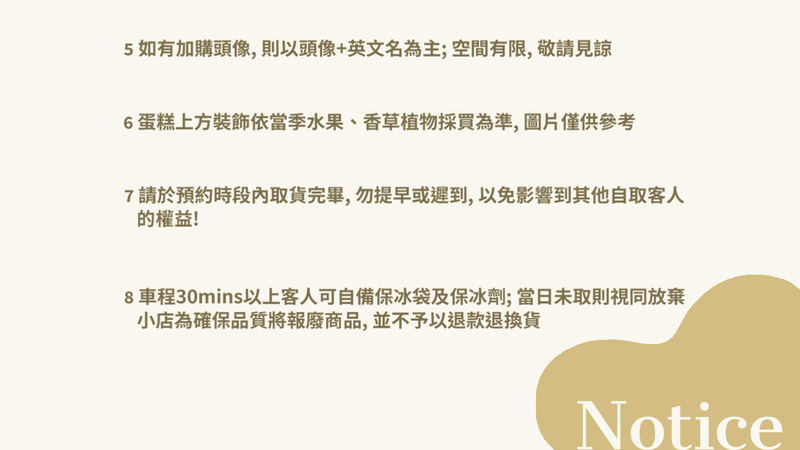 ❋ 請於預約時段內取貨完畢, 勿提早或遲到, 以免影響到其他自取客人的權益!
