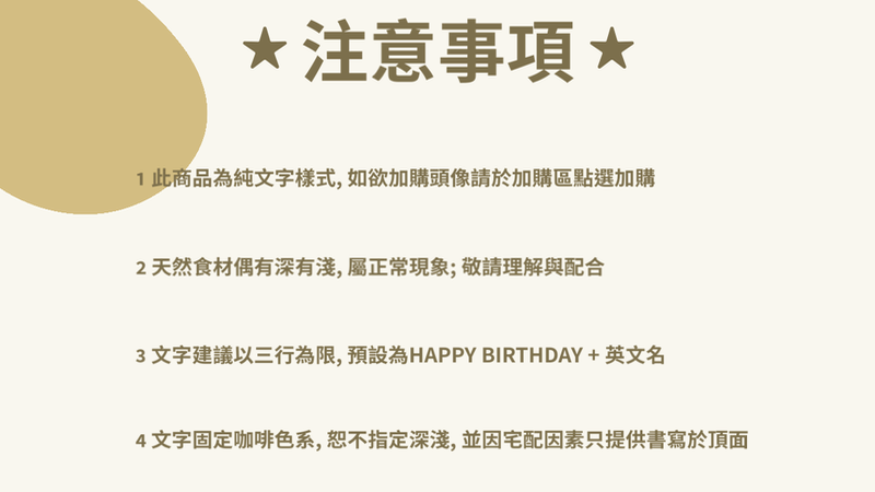 ∷ 尺寸:四吋蛋糕、四吋加高、五吋蛋糕